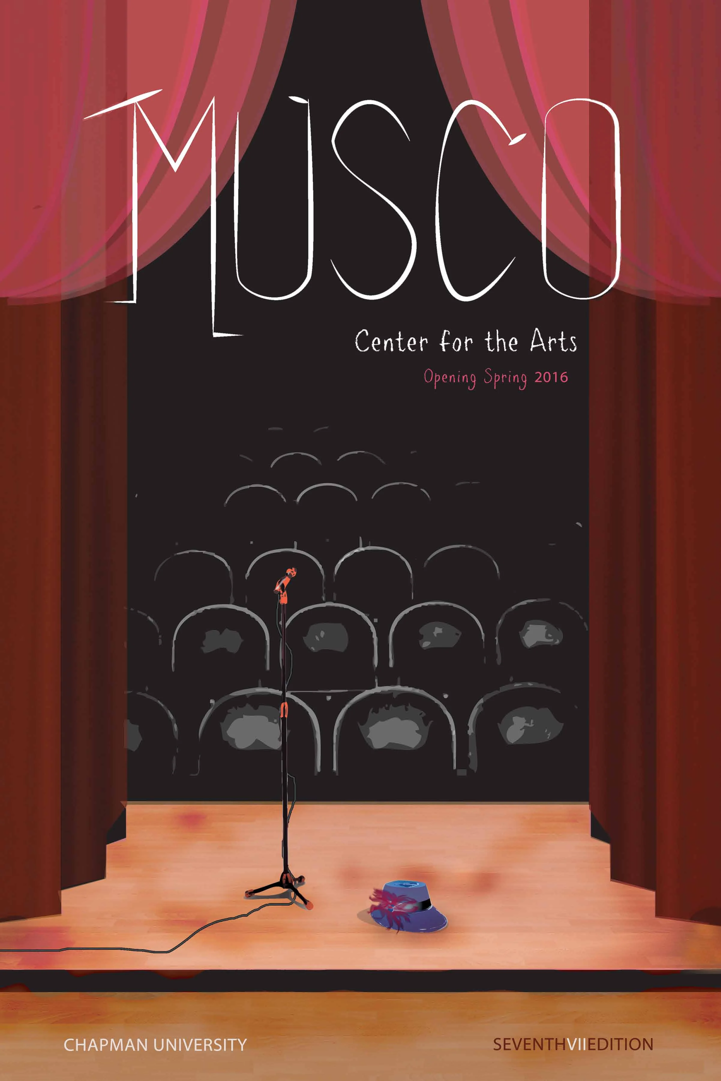 Design the seventh annual commemorative poster for Chapman University's new performing arts building, the MUSCO Center for the Arts. The poster should capture the spirit and quality of the contents within.
